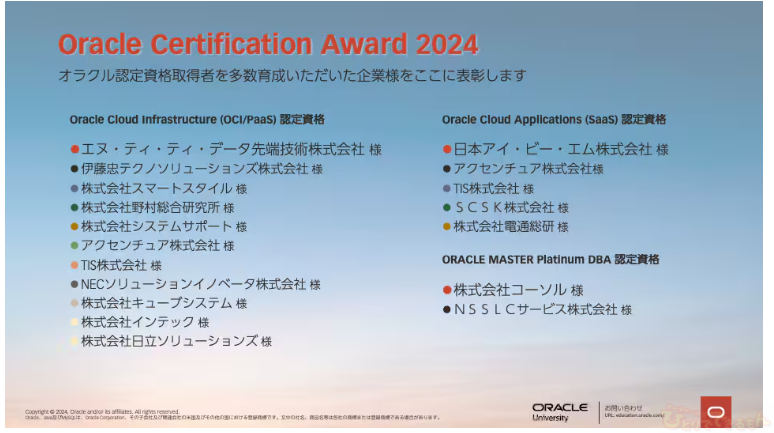 今年もOracle Certification Award 2024 に選出されました!