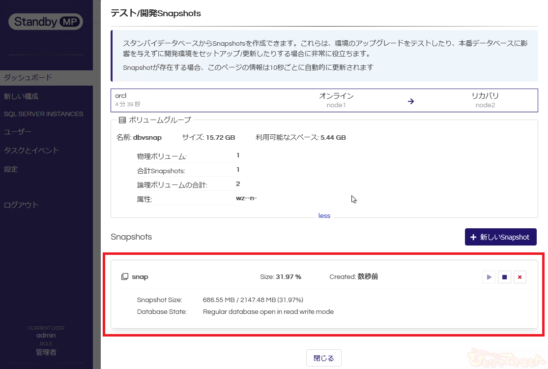 【Dbvisit Standby】チュートリアル_Snapshots