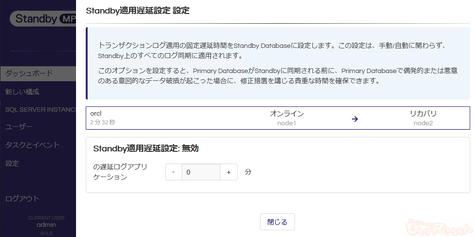 【Dbvisit Standby】チュートリアル_Standby適用遅延設定