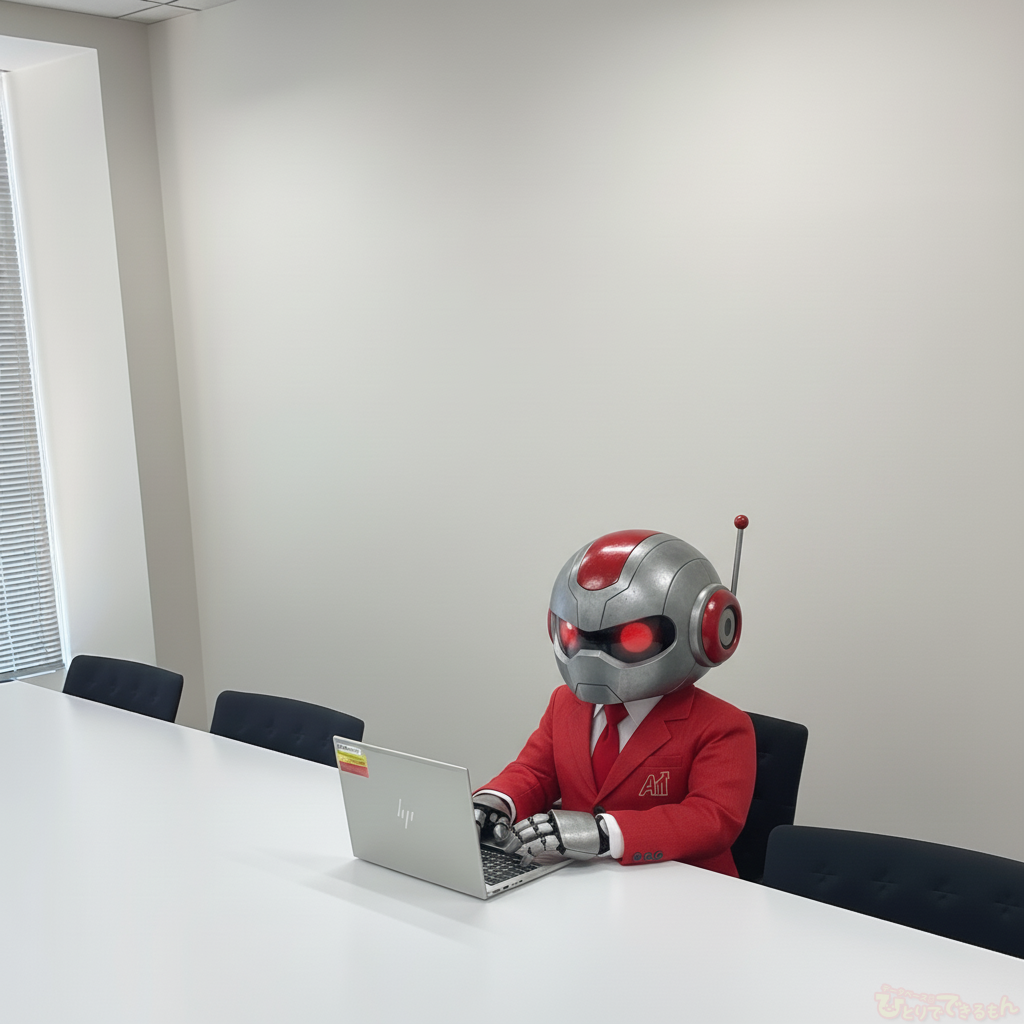 それを確認するため、新サービス「AIメディアブースト」のキャラクター「Mr.ブースト」をリアルな会議室の写真に合成してみました!