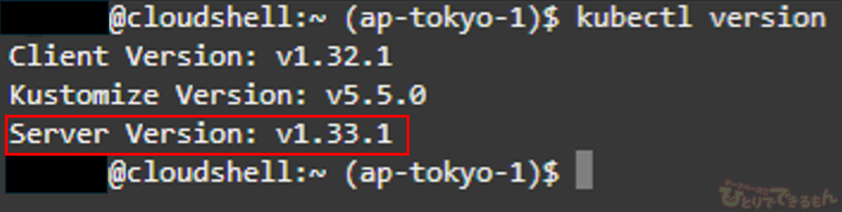 - 「②バージョンの確認」でメモしたコマンドを実行し、バージョンを確認します。
