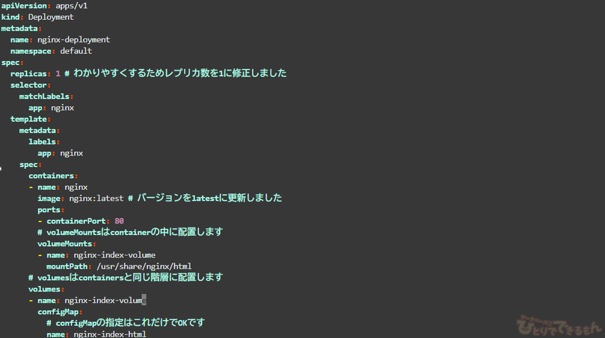$ vi /home/<ユーザ名>/nginx-deployment.yaml