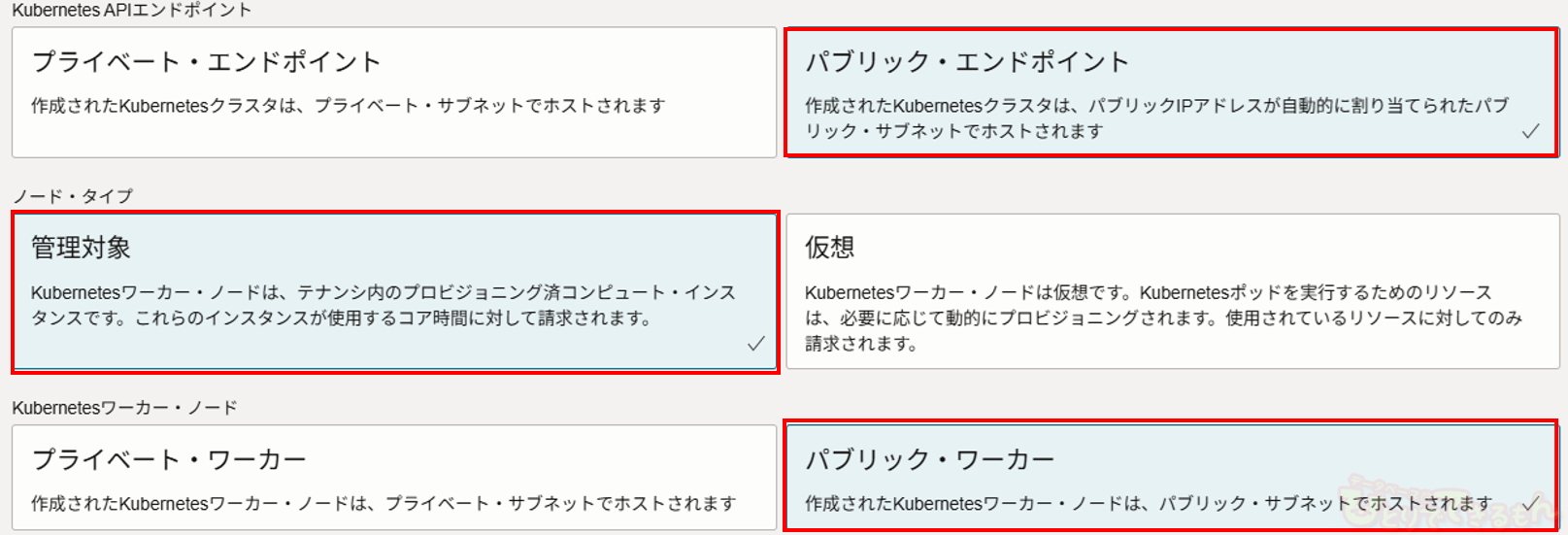 - Kubernetesワーカー・ノード :「パブリック・ワーカー」を指定します。