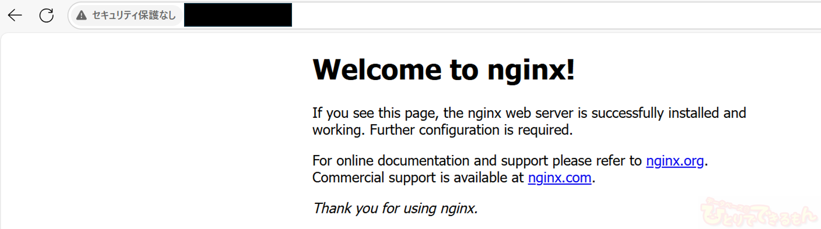 EXTERNAL-IPにIPアドレスが表示されてますので、ブラウザを開いてIPアドレスを入力します。