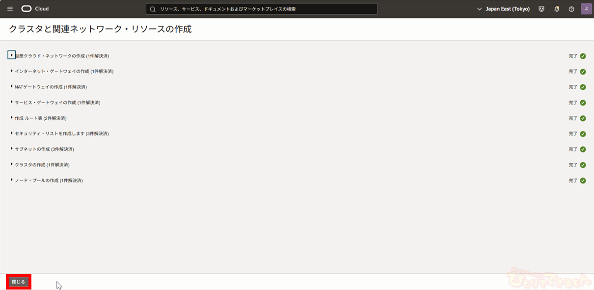 - 全て「完了」になるのを確認し、「閉じる」をクリックします。