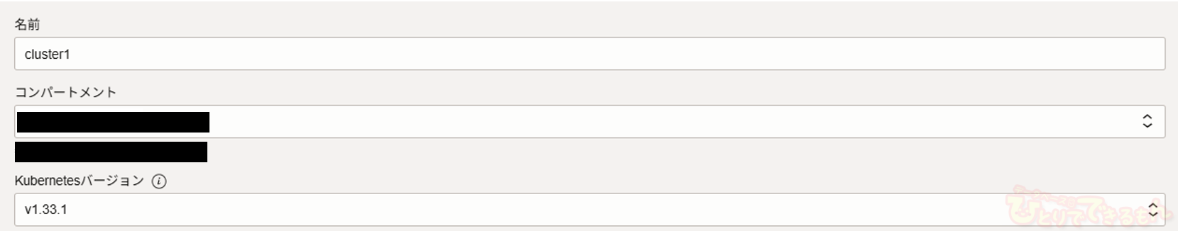 - コンパートメント:クラスタを作成するコンパートメントを指定します。