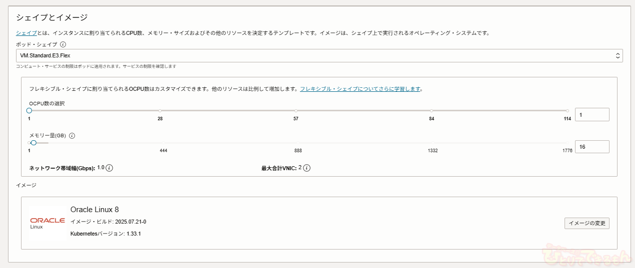 - ポッドシェイプ:デフォルトで「Pod.Standard.E4.Flex」を指定します。