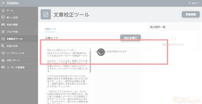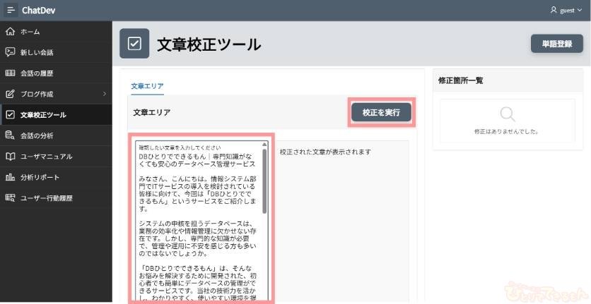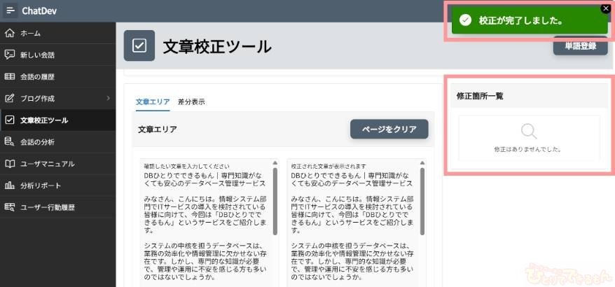 AIメディアブーストは誤字脱字、てにをは、文字の揺れ、コードの修正まで行ってくれます。