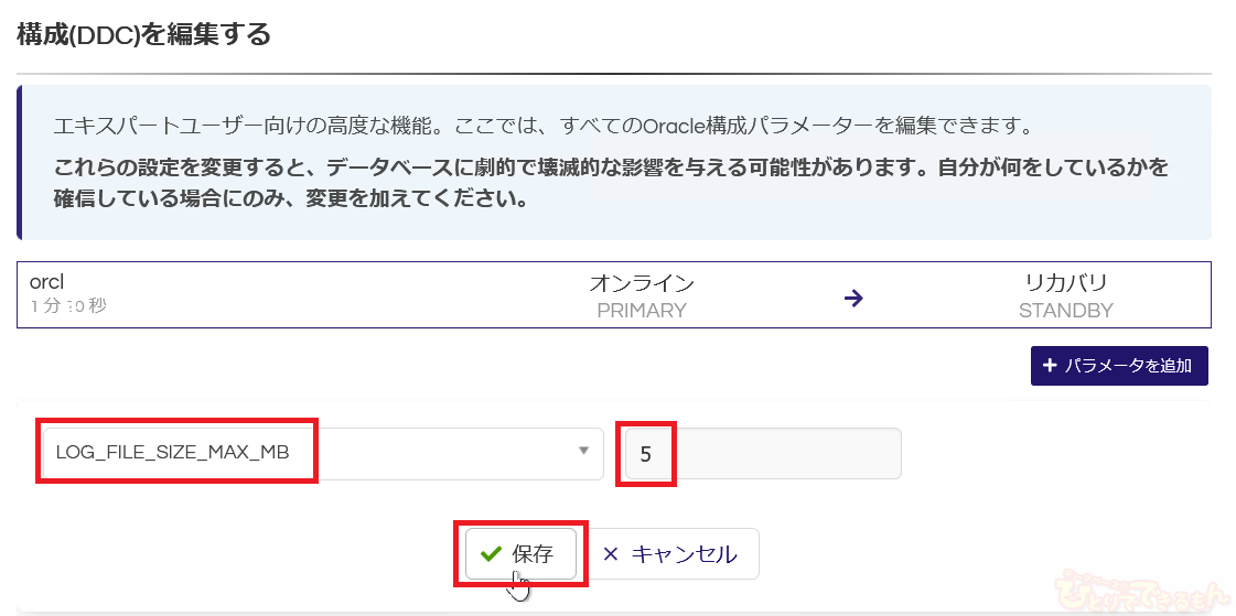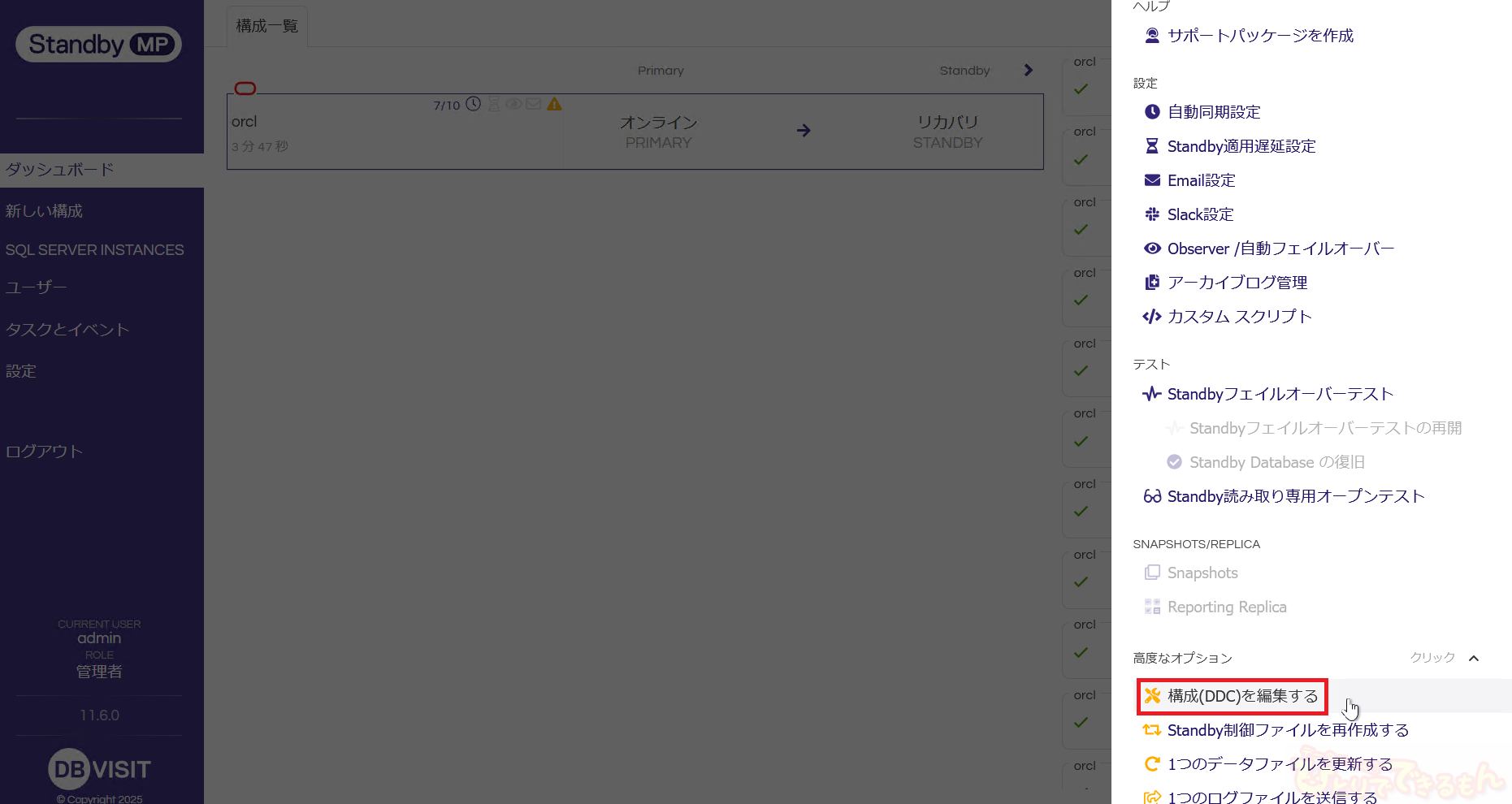 Dbvisit StandbyではDDCパラメータの変更をGUIを操作することで実行できます。