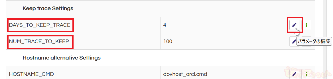 パラメータ「DAYS_TO_KEEP_TRACE」と「NUM_TRACE_TO_KEEP」は