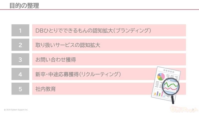 「目的は?」「ターゲットは?」「KPIは?」これらが曖昧なままでは、成果は見込めません。(DBひとりでできるもん運営チームの我々にも言えることです)