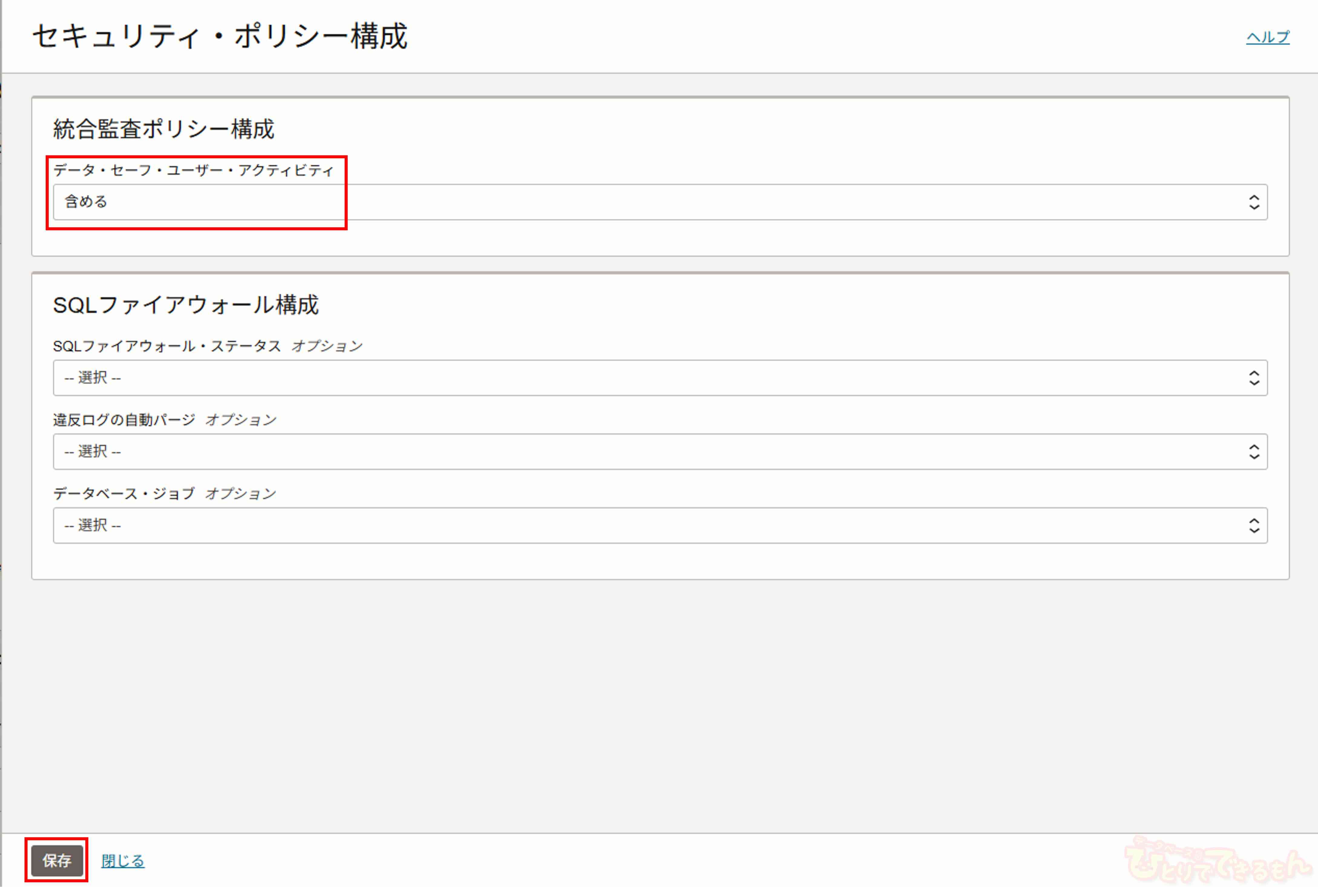 今回はターゲット・データベースが19cのため、統合監査ポリシー構成を設定し、「保存」を選択します。