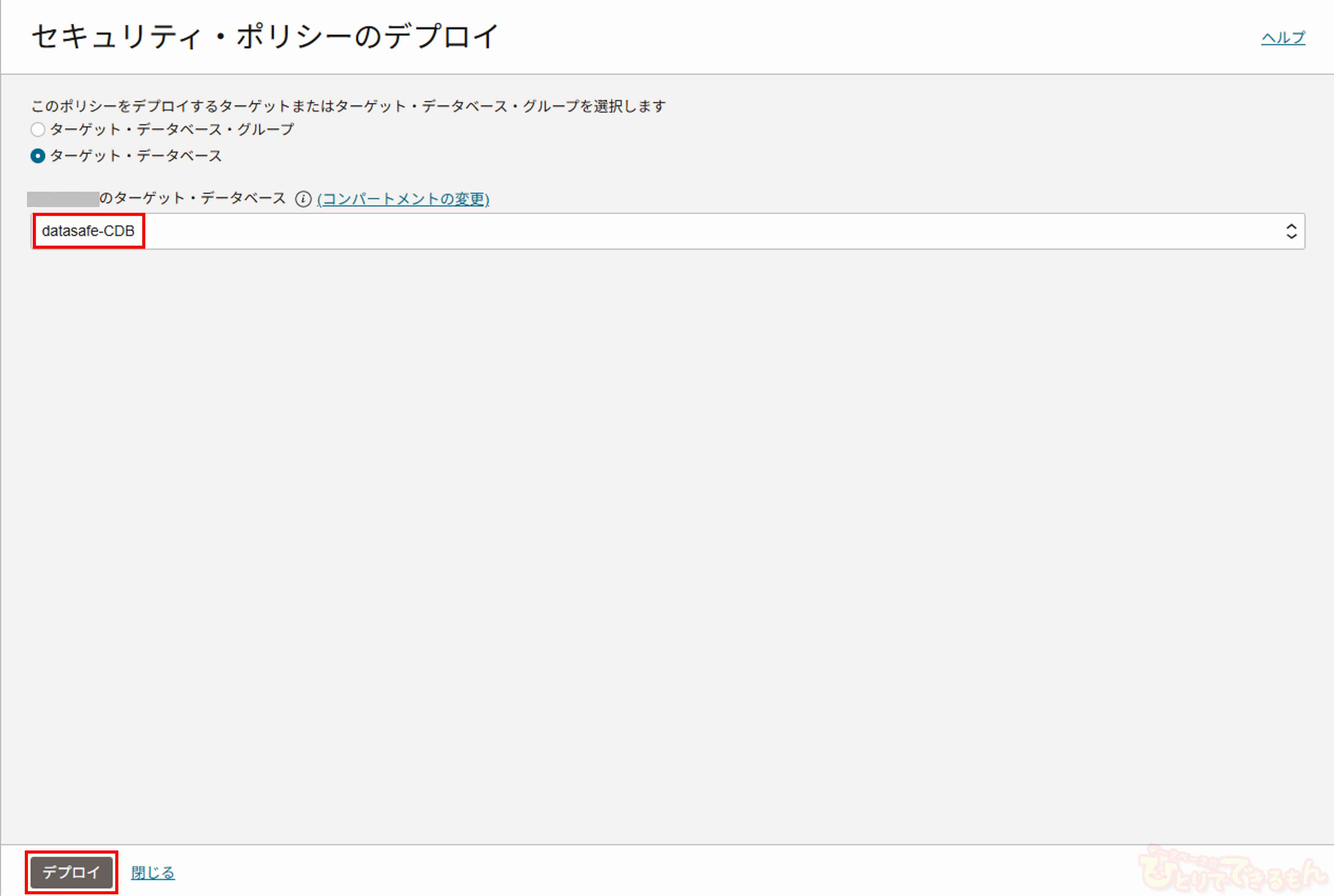 セキュリティ・ポリシーをデプロイする対象のターゲット・データベースを選択し、「デプロイ」を選択します。