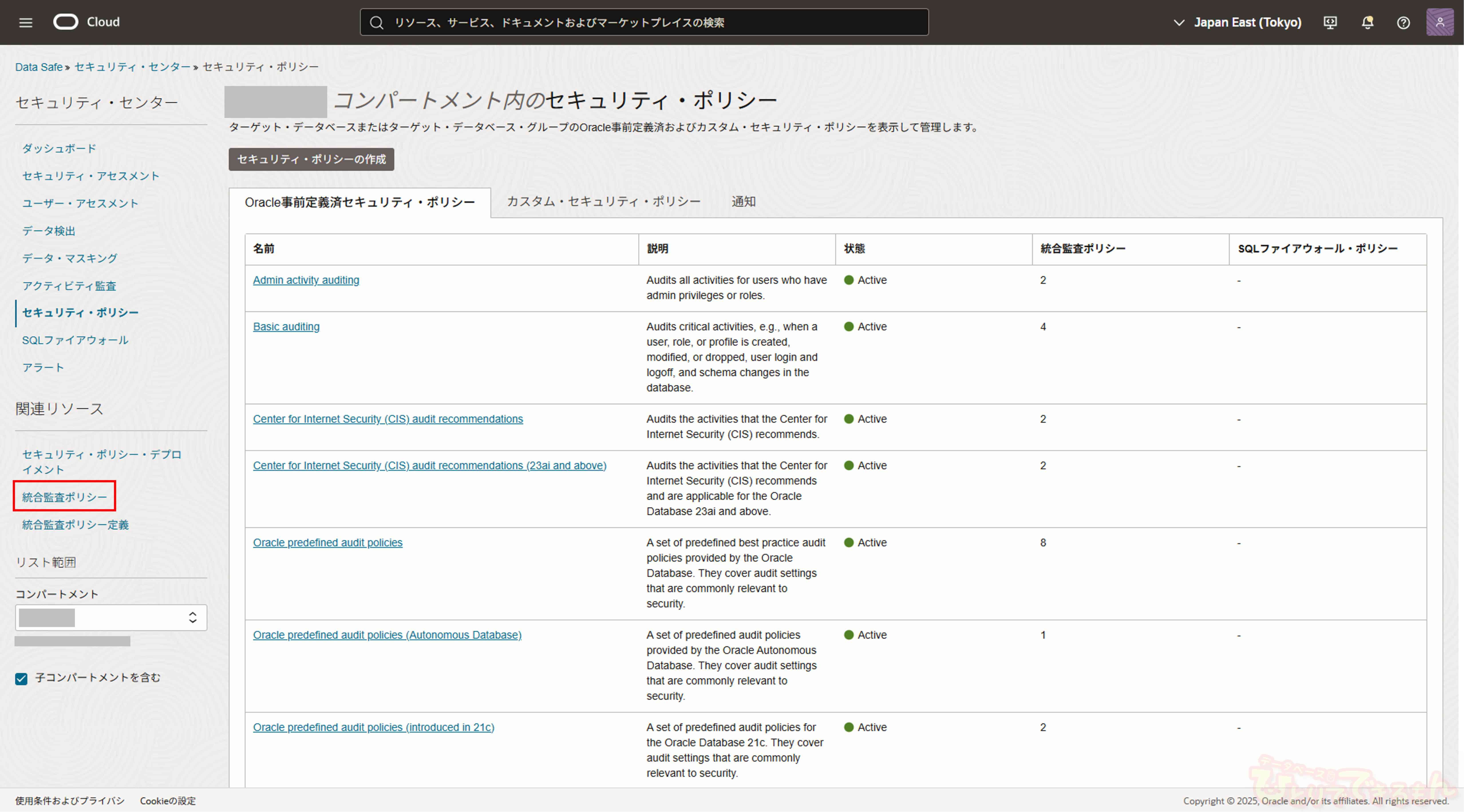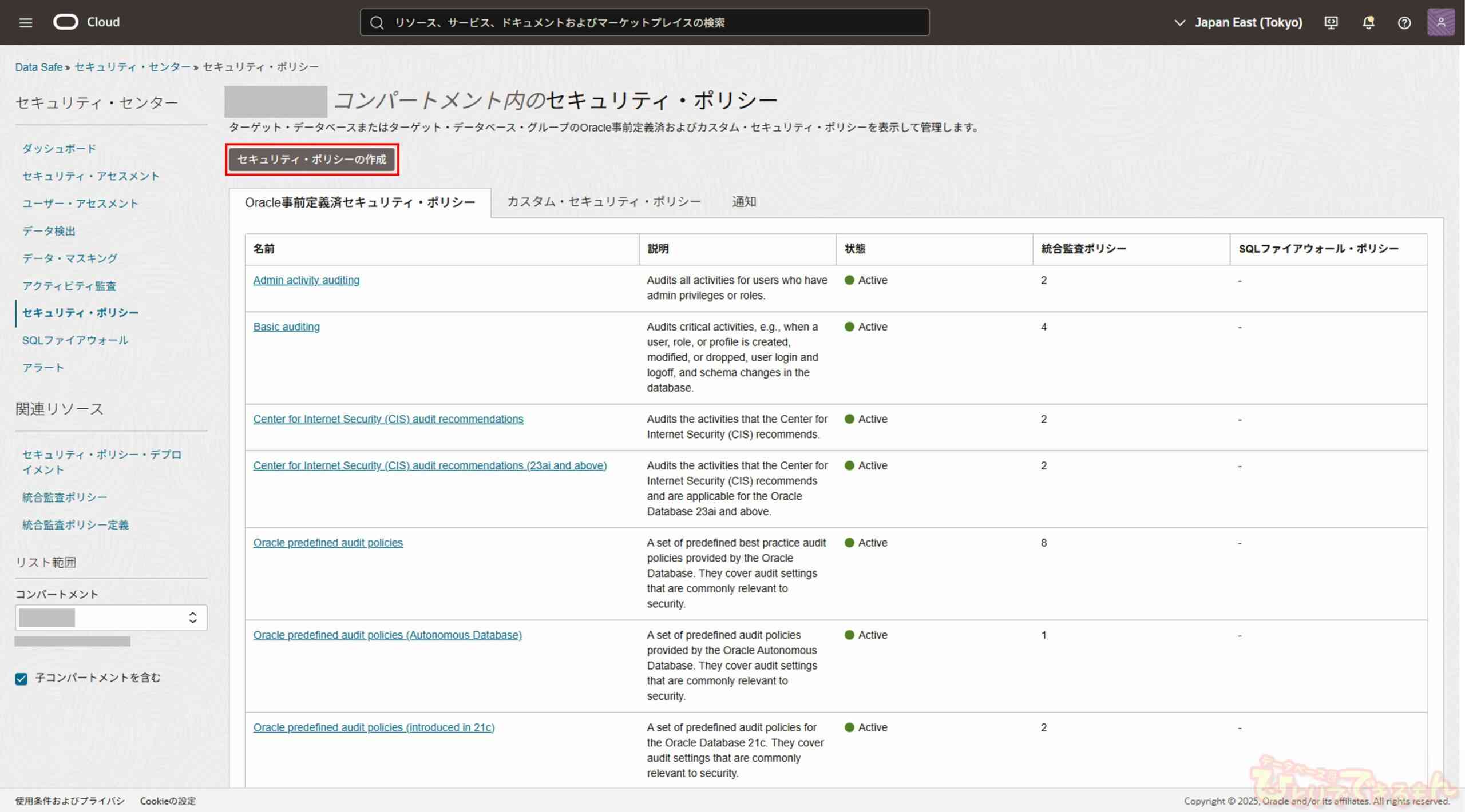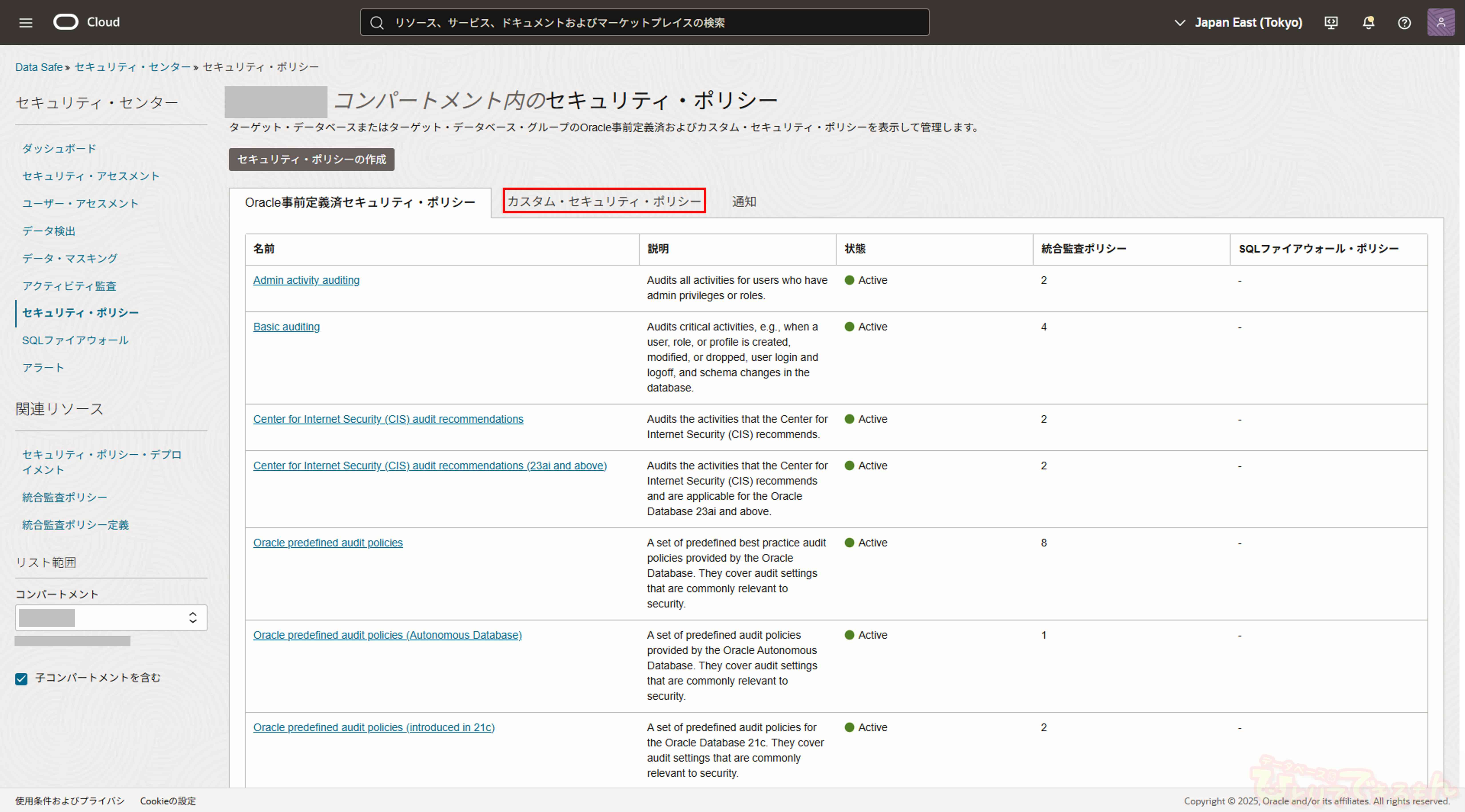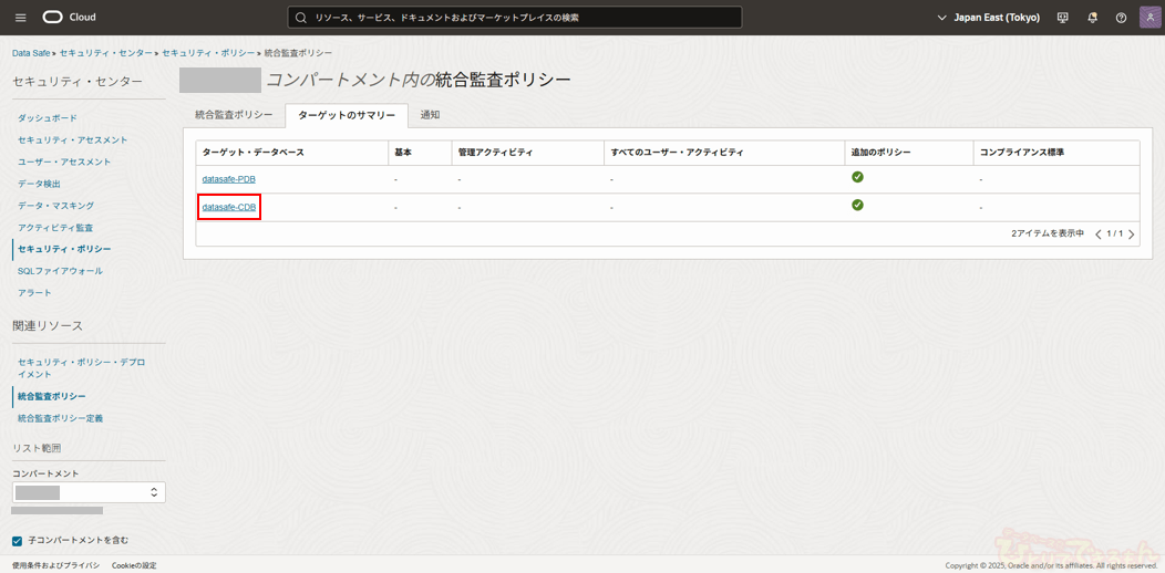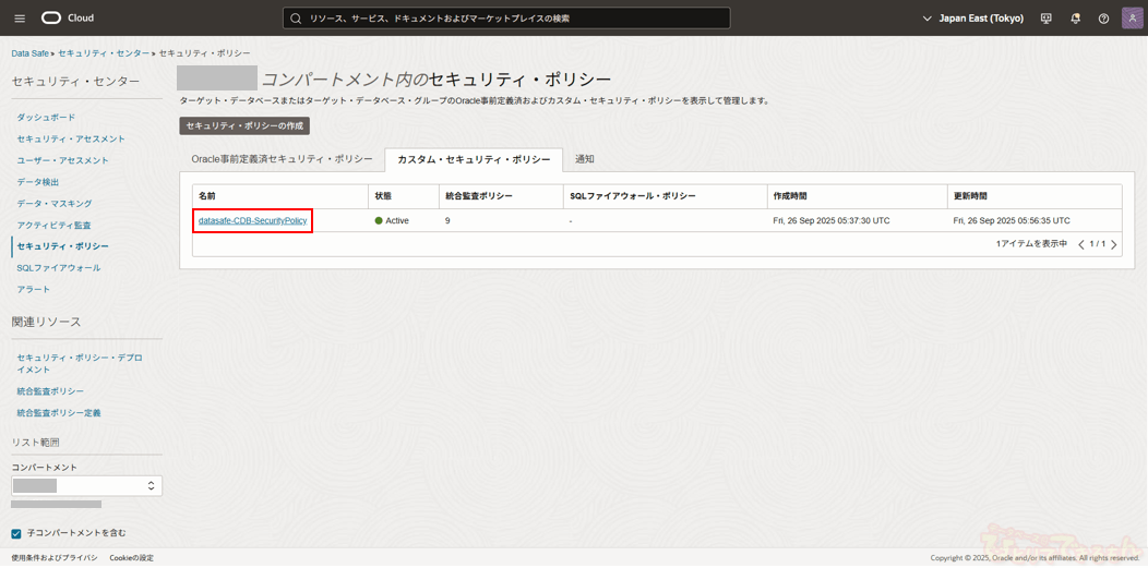 今回は、前回の記事(Data Safeの新機能 セキュリティ・ポリシー機能について(1/2))の続きとなります。